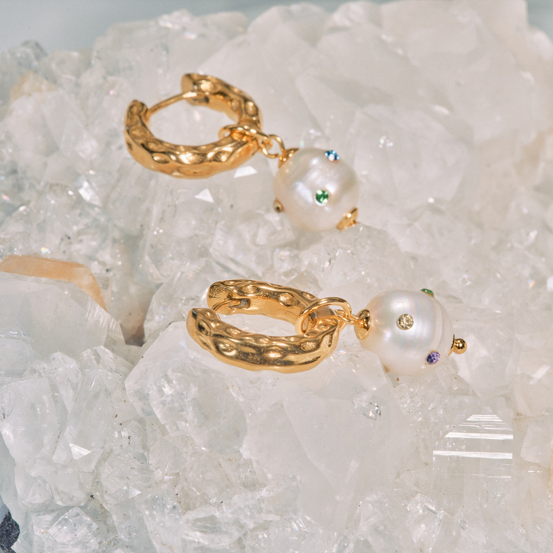 Seis Diamanti Øreringe 18k Forgyldt m. Multi Ferskvandsperle - Vandfast