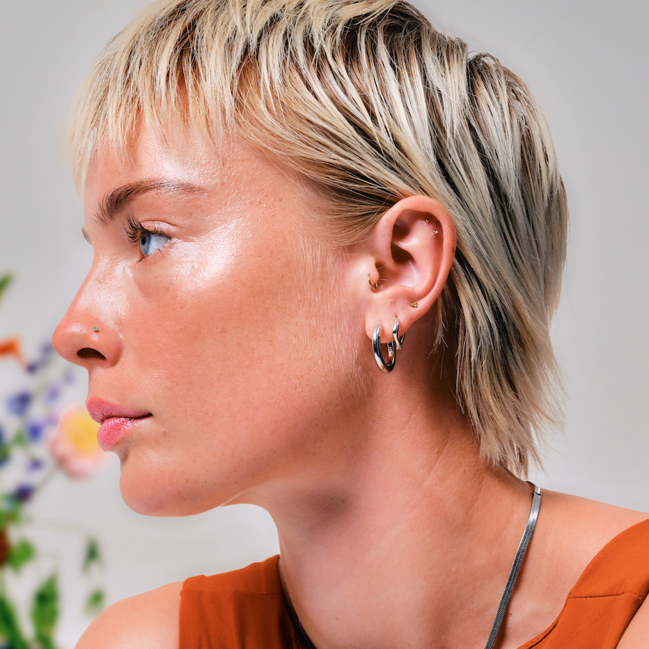 Helena Hoop er vores skønne mini kreolere med en ekstra krølle. Fantastisk alene eller sammen med andre øreringe. Øreringene skiller sig ud ved at have en variation, og er ikke blot dine klassiske kreolere.