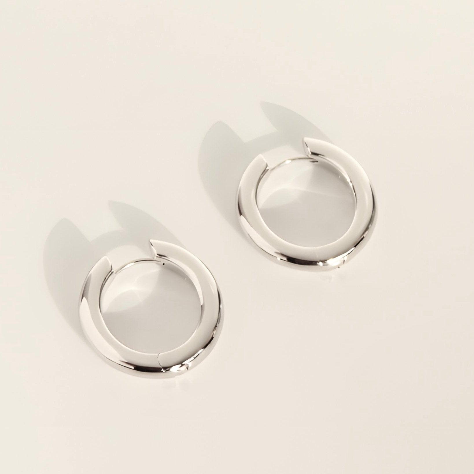 Øreringene er lavet af hvidguldsbelagt messing og er dybt belagt. Vi anbefaler at opbevare dem i den lufttætte EMÝ smykkeboks, som følger med ved køb.