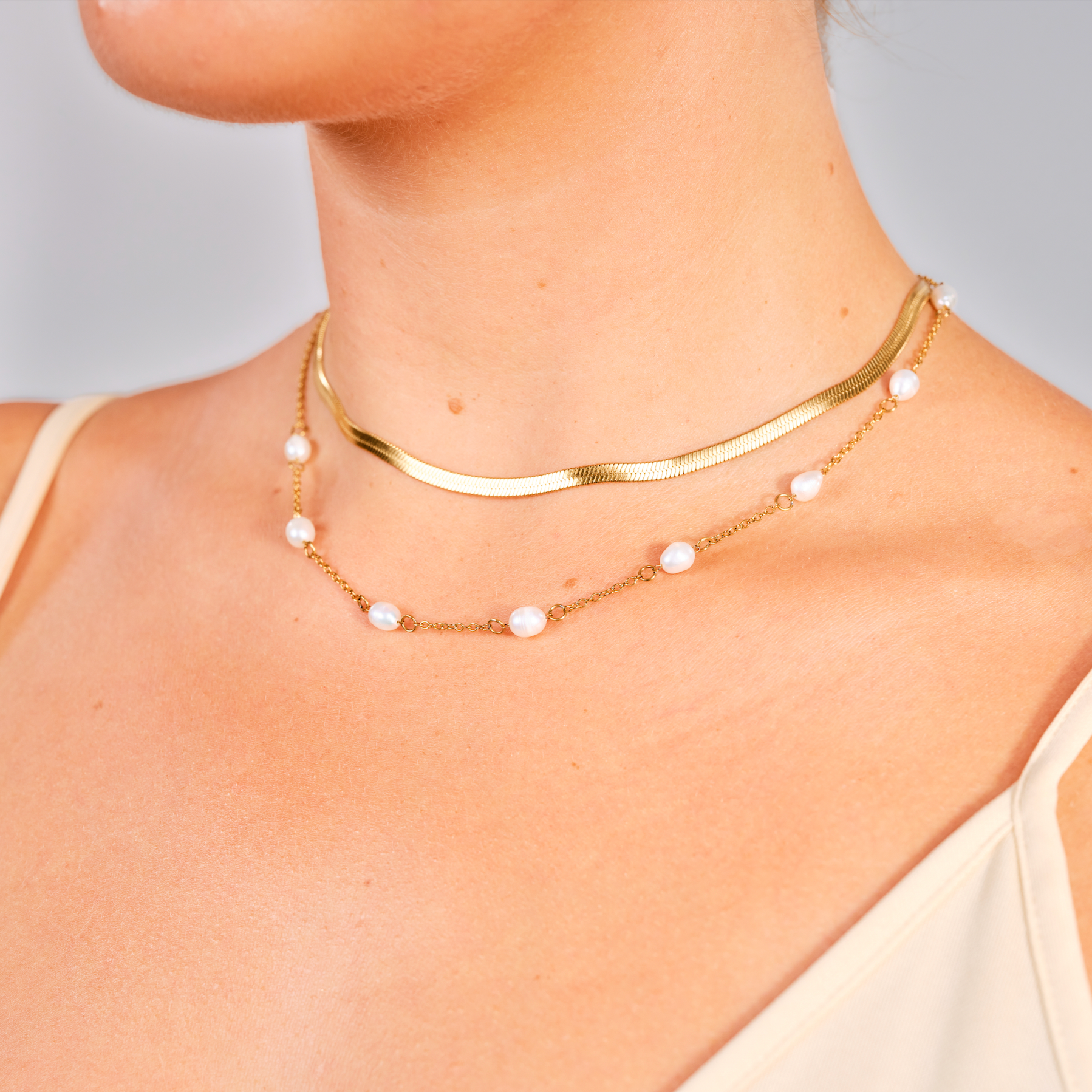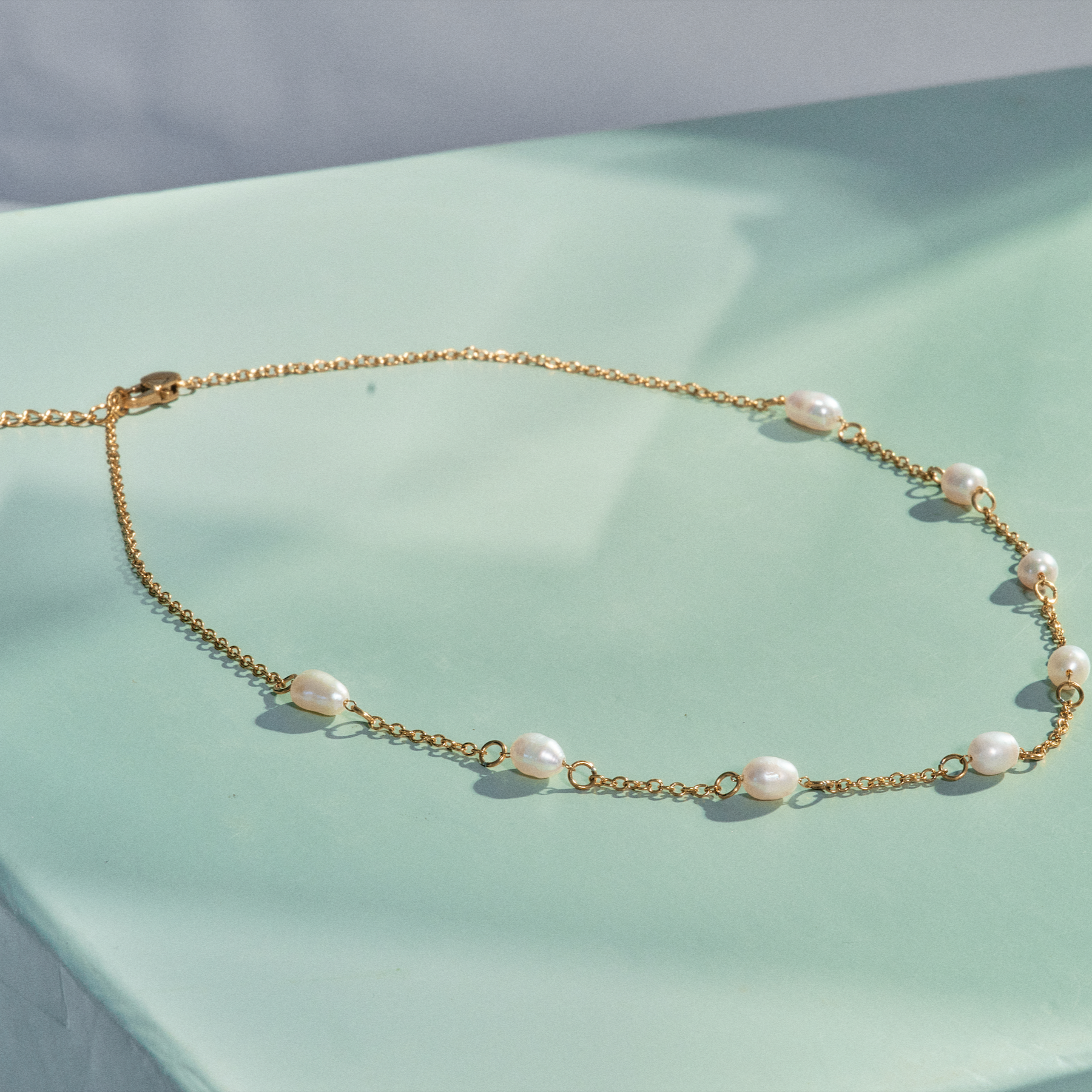 Mathilde Perler Halskæde er et elegant smykke, som pryder din hals med 8 smukke ferskvandsperler.