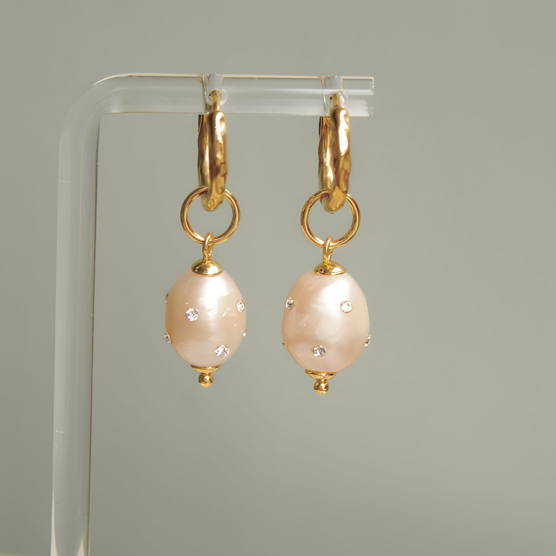 Olli Hoop Øreringe 18k Forgyldt m. Rosa Ferskvandsperle - Vandfast