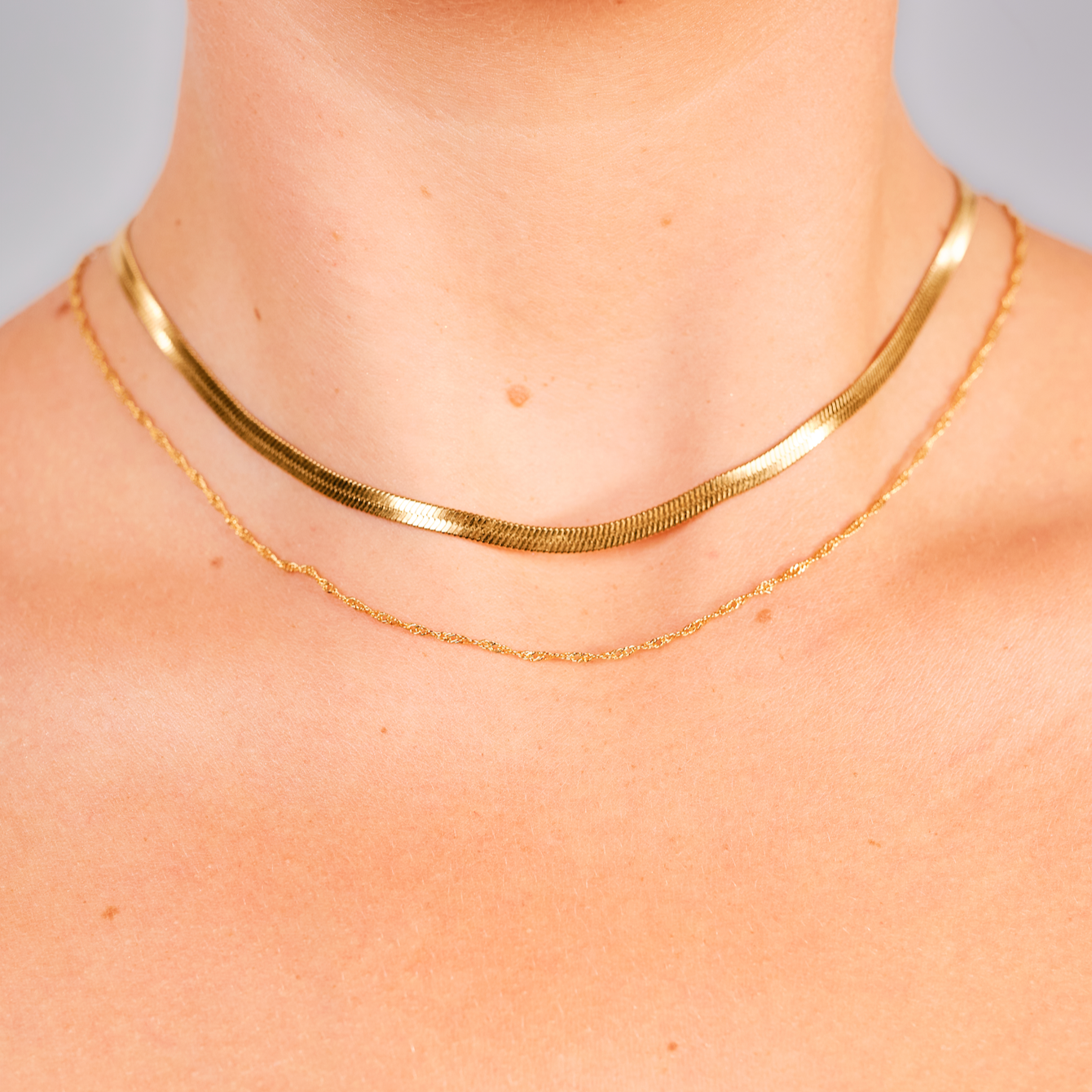 Emmeli Halskæden er en klassisk Singapore-kæde, der er et absolut must-have. Halskæden snor sig elegant omkring halsen, og det tidløse design passer perfekt til enhver stil - enten alene eller som supplement til eksempelvis Nabs Halskæde. Emmeli Halskæden er også utrolig smuk sammen med en af vores perlevedhæng, som for eksempel Multi Ferskvandsperle.